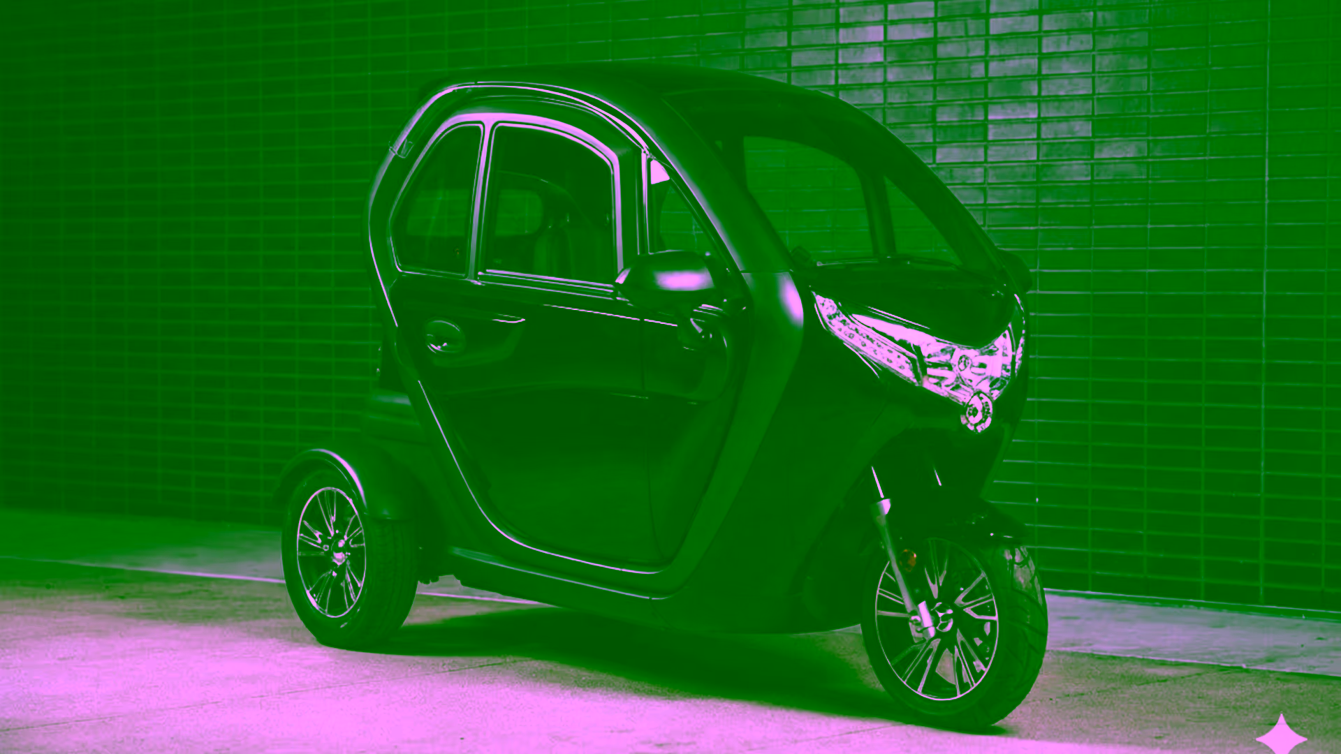 The bridge between a car and a motorcycle. A fully enclosed electric cabin cycle designed for safety, weather protection, and urban agility.